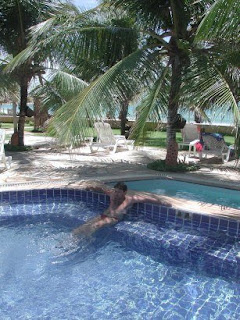 - Pense numa pousada deliciosa. Em frente ao mar. Uma piscina gostosa, comida inacreditavelmente boa, serviço perfeito. Essa é a Pousada Jambo, em Itacimirim. Não dá vontade nem de ir embora. Olha aí o Bruno curtindo a piscina em frente ao mar…