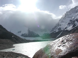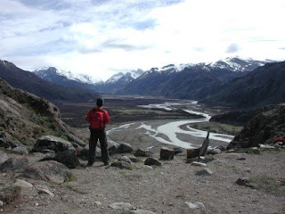 Descemos do ônibus, quase fomos carregados pelo vento e fomos procurar uma hospedagem. Me desculpem, mas nem lembro do nome da pousadinha em que ficamos. Saímos e fomos direto para o primeiro sendero, ou trilha. Caminhamos umas 3 horas por lugares lindos e chegamos aos pés do Cerro Torre. Nunca tinha visto nada tão interessante… Uma tempestade no Cerro não nos deixava ver o pico, mas eu só ficava imaginando como deveria ser passar por aquela tempestade ali. Subimos, na verdade, engatinhamos um pequeno morro, porque o vento não deixava a gente ficar de pé. E vimos uma lagoa linda, com o Cerro Torre atrás.