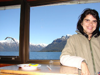 Mas pense numa coisa linda: um lago majestoso, imenso, como o Nahuel Huapi. Bariloche, às margens desse lago, espremida entre o lago e as montanhas, que em boa parte do ano, estão cobertas de neve. Irresistível. O comércio em Bariloche é muito bom, mas o que mais me encanta mesmo é a natureza. Eu prefiro alugar um carro e ficar hospedada fora do centro – na Av. Bustillo, que margeia o lago. São centenas de pousadas, bangalôs, chalés de todos os preços e gostos, onde se pode acordar com aquela bela visão do Nahuel Huapi. Em 2006, eu e Bruno fomos estudar espanhol em Bariloche. Ficamos 6 semanas ali, vivendo como eles, amando muito tudo aquilo. Ficamos num bangalô simples, mas delicioso, o Bosque de Los Elfos. Estivemos lá agora esse ano, vi que mudaram os donos, mas os bangalôs continuam lá, à beira do Lago.