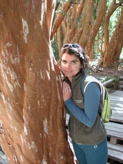 Eu abraçando um Arrayan, árvore que só existe ali.