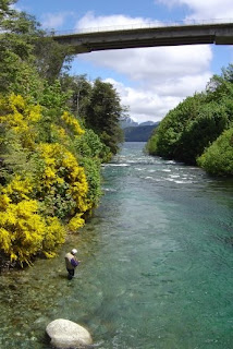 Rio Correntoso, de apenas 200m, une o Lago Nahuel Huapi ao Lago Correntoso. Mira qué rico!
