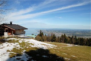 Aqui um exemplo já na primavera. Conforme a gente vai subindo, ainda se vê neve. Mas as estradas estão bem limpinhas. Observem o Lago de Constance ao fundo! Passeio de teleférico pelo Pfänder é uma atração turística… e um verdadeiro deleite! Eu me sinto tão bem, tão “livre” enqunato vou de uma montanha à outra! Dá vontade de levantar voo!